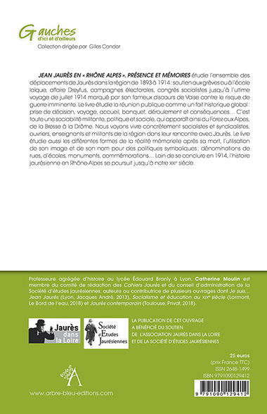 Jean Jaurès en « Rhône-Alpes ». Présence et mémoires étudie l’ensemble des déplacements de Jaurès dans la région de 1893 à 1914 : soutien aux grèves ou à l’école laïque, affaire Dreyfus, campagnes électorales, congrès socialistes jusqu’à l’ultime voyage de juillet 1914 marqué par son fameux discours de Vaise contre le risque de guerre imminente. Le livre étudie la réunion publique comme un fait historique global : prise de décision, voyage, accueil, banquet, déroulement et conséquences… C’est toute une sociabilité militante, politique et sociale, qui apparaît ainsi du Forez aux Alpes, de la Bresse à la Drôme. Nous voyons vivre concrètement socialistes et syndicalistes, ouvriers, enseignants et militants de la région dans leur rencontre avec Jaurès. Le livre étudie aussi les différentes formes de la réalité mémorielle après sa mort, l’utilisation de son image et de son nom pour des politiques symboliques : dénominations de rues, d’écoles, monuments, commémorations… Loin de se conclure en 1914, l’histoire jaurésienne en Rhône-Alpes se poursuit jusqu’à notre XXIe siècle.
