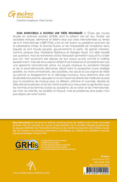 Elisa Marcobelli est docteure en Histoire contemporaine de l’EHESS et de la Freie Universität de Berlin. Elle est membre du conseil d’administration de la Société d’études jaurésiennes, du groupe EUROSOC de l’Université de Rouen et du comité de rédaction des Cahiers Jaurès. Elle est l’auteure de plusieurs publications scientifiques sur l’histoire du socialisme français, allemand et italien d’avant 1914.