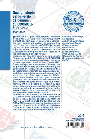 Fondé en 1972 par Denis Forestier, président de la MGEN, sous la forme d’un Groupement d’intérêt économique, le Comité de coordination des œuvres mutualistes et coopératives de l’Éducation nationale (CCOMCEN) devrait aujourd’hui fêter ses cinquante ans. Mais il s’est éteint en 2010 au profit de l’association L’ESPER (L’Économie sociale partenaire de l’École de la République) qui a pris son relais.