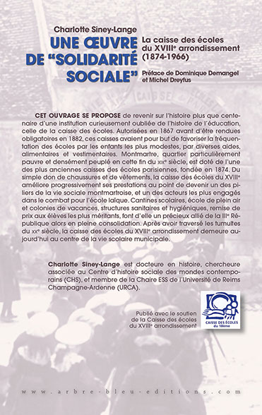 Cet ouvrage se propose de revenir sur l’histoire plus que centenaire d’une institution curieusement oubliée de l’histoire de l’éducation, celle de la caisse des écoles. Autorisées en 1867 avant d’être rendues obligatoires en 1882, ces caisses avaient pour but de favoriser la fréquentation des écoles par les enfants les plus modestes, par diverses aides, alimentaires et vestimentaires. Montmartre, quartier particulièrement pauvre et densément peuplé en cette fin du XIXe siècle, est doté de l’une des plus anciennes caisses des écoles parisiennes, fondée en 1874. Du simple don de chaussures et de vêtements, la caisse des écoles du XVIIIe améliore progressivement ses prestations au point de devenir un des piliers de la vie sociale montmartroise, et un des acteurs les plus engagés dans le combat pour l’école laïque. Cantines scolaires, école de plein air et colonies de vacances, structures sanitaires et hygiéniques, remise de prix aux élèves les plus méritants, font d’elle un précieux allié de la IIIe République alors en pleine consolidation. Après avoir traversé les tumultes du xxe siècle, la caisse des écoles du XVIIIe arrondissement demeure aujourd’hui au centre de la vie scolaire municipale.